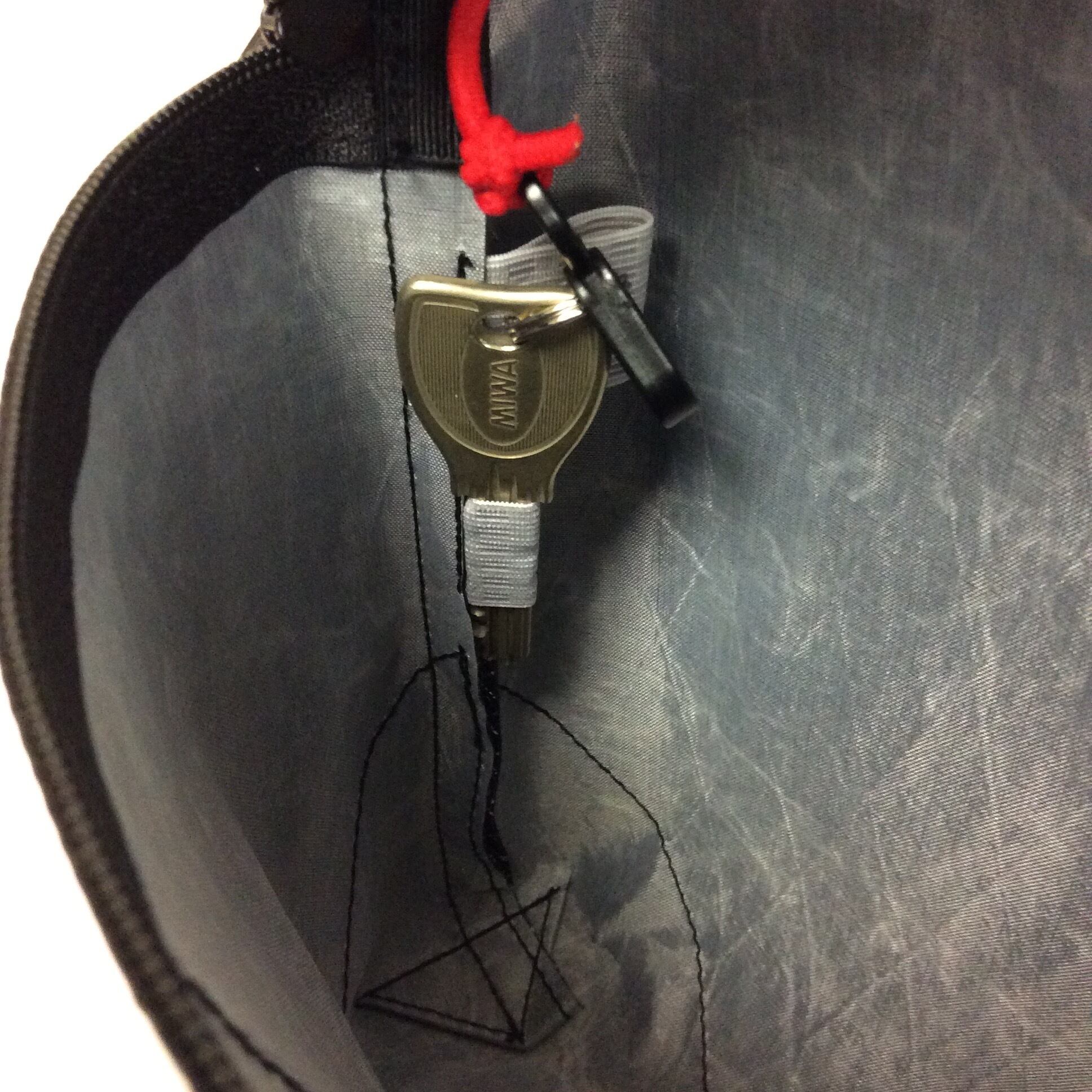 内部構造は両サイドに主にリップスティックやライター等の筒状のものを差し込む為のゴムホルダーと、主に鍵の先端を差し込む為のゴムホルダーが装備されています。